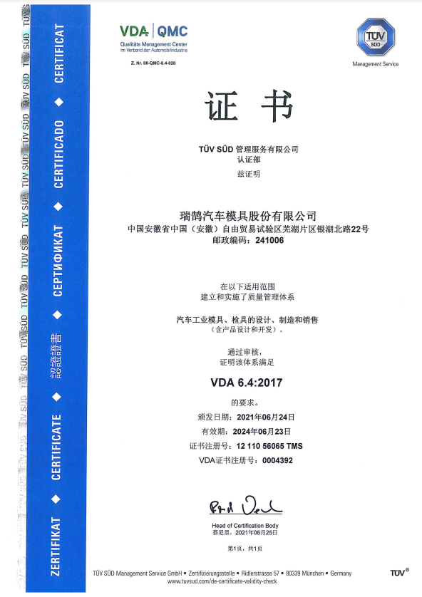 ????????瑞鵠汽車模具股份有限公司成立于2002年3月,坐落于中國(安徽)自由貿(mào)易試驗(yàn)區(qū)蕪湖片區(qū)銀湖北路 22 號(hào),股本數(shù)18360萬,公司的主營業(yè)務(wù)為汽車沖壓模具、檢具及焊裝自動(dòng)化生產(chǎn)線的開發(fā)、設(shè)計(jì)、制造和銷售,主要產(chǎn)品有沖壓模具(覆蓋件模具、高強(qiáng)板模具)及檢具、焊裝自動(dòng)化生產(chǎn)線、一體化鋁壓鑄零部件,為國內(nèi)少數(shù)能夠同時(shí)為客戶提供完整的汽車白車身高端制造裝備、智能制造技術(shù)及整體解決方案的企業(yè)之一。